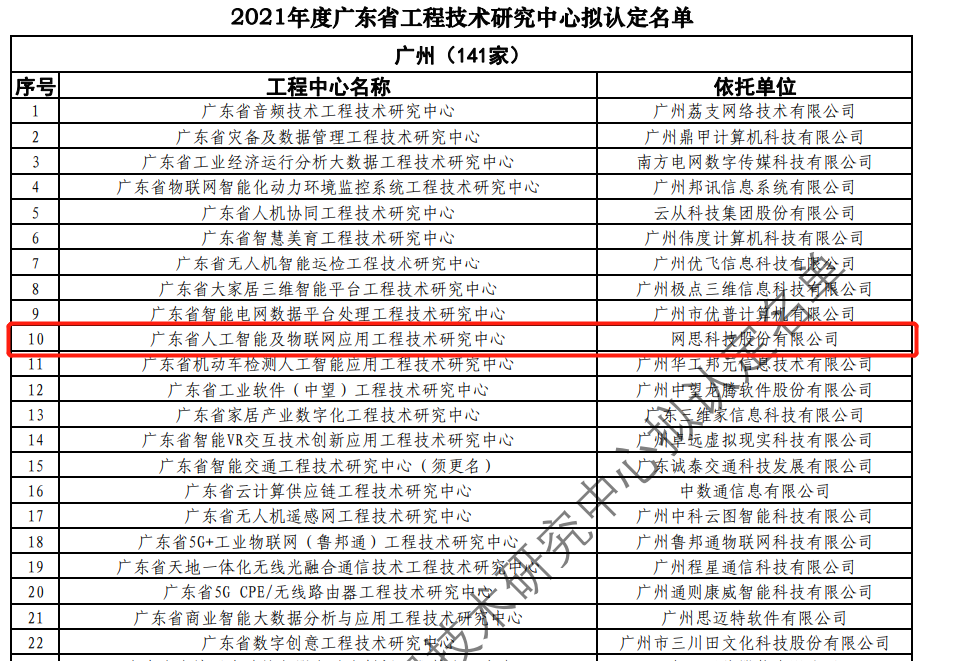 日前,广东省科技厅发布2021年度广东省工程技术研究中心名单。经过层层筛选、专家评审,依托足球竞猜-足球实时竞猜-足球竞猜官网 建设的“广东省人工智能及物联网应用工程技术研究中心”榜上有名。广东省工程技术研究中心主要依托省内行业、领域具有科技实力的、拥有一定规模以上创新型企业建设,部分依托高校和科研院所组建。工程中心旨在